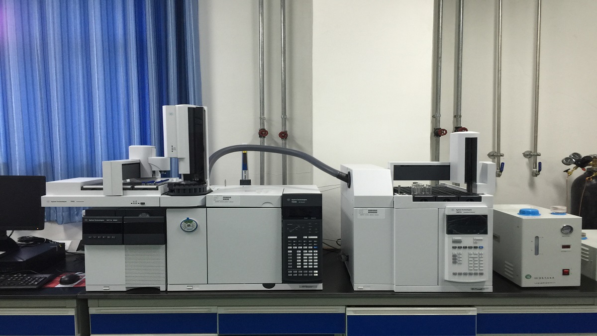 气相色谱质谱联用仪:当多组分的混合样品进入色谱柱后,由于吸附剂对每个组分的吸附力不同,经过一定时间后,各组分在色谱柱中的运行速度也就不同。吸附力弱的组分容易被解吸下来,最先离开色谱柱进入检测器,而吸附力最强的组分最不容易被解吸下来,因此最后离开色谱柱。如此,各组分得以在色谱柱中彼此分离,顺序进入检测器中被检测、记录下来,配氢火焰检测器(FID)和电子俘获检测器(ECD),在中药材中主要用于检测有机氯农药残留量、含量测定。